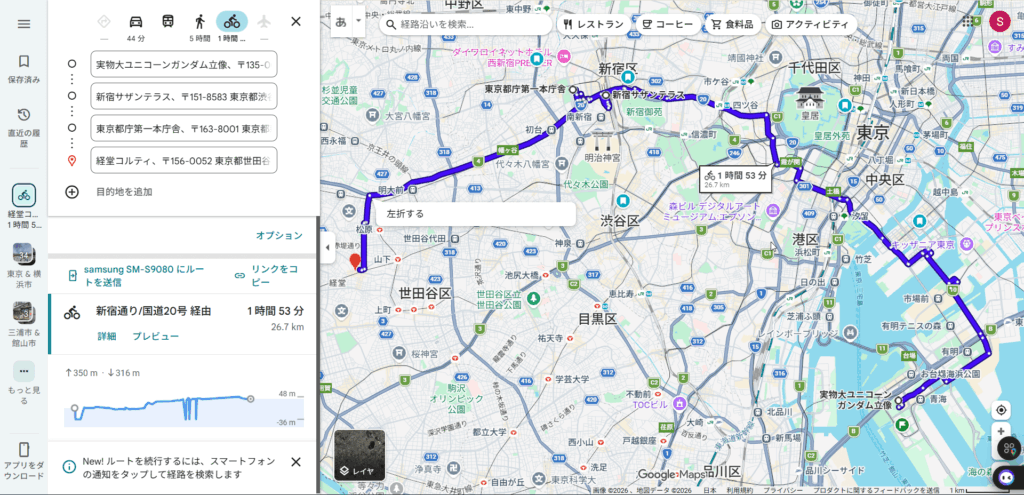 ここにGRAND CYCLE TOKYO レインボーライド2025と自宅までの距離を足して、107kmでした。