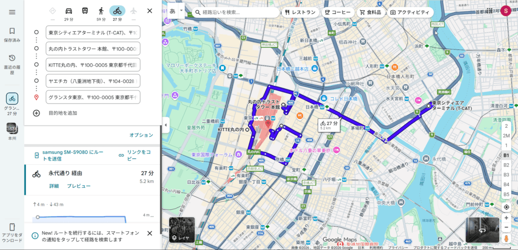 東京駅から銀座に徒歩で行くことができるのですが、思っている以上に近いんですよね。