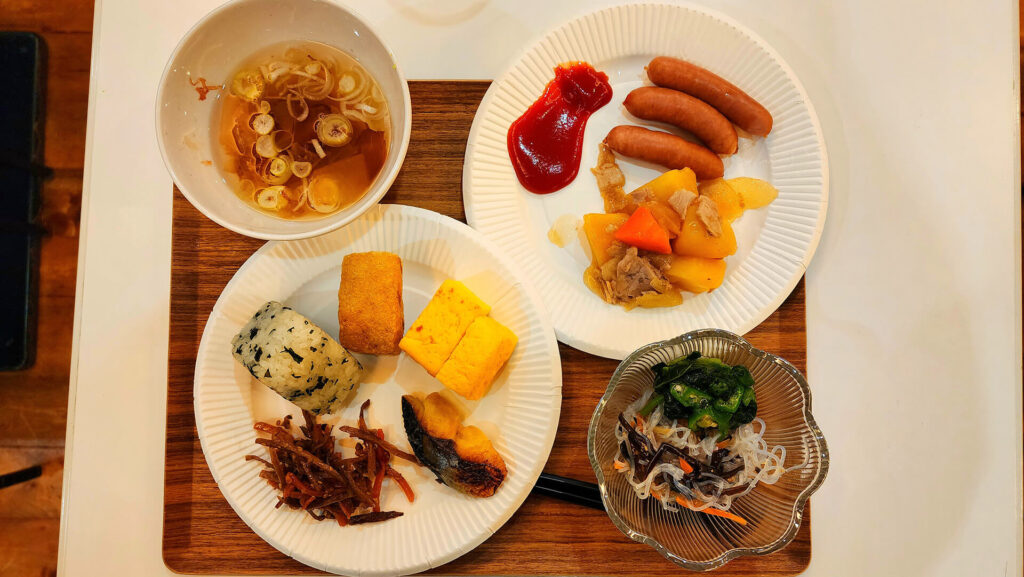 2日目はヤスダヨーグルトさんにあるストピが駅から遠く、ここがかなりの時間を消費するため7時にはホテルをチェックアウトしなけれならないという。なので、朝食を早めに済ませましたががっつり食べています。(ビュッフェ形式でしたが、種類は少なめでした。平日だったからかな。)