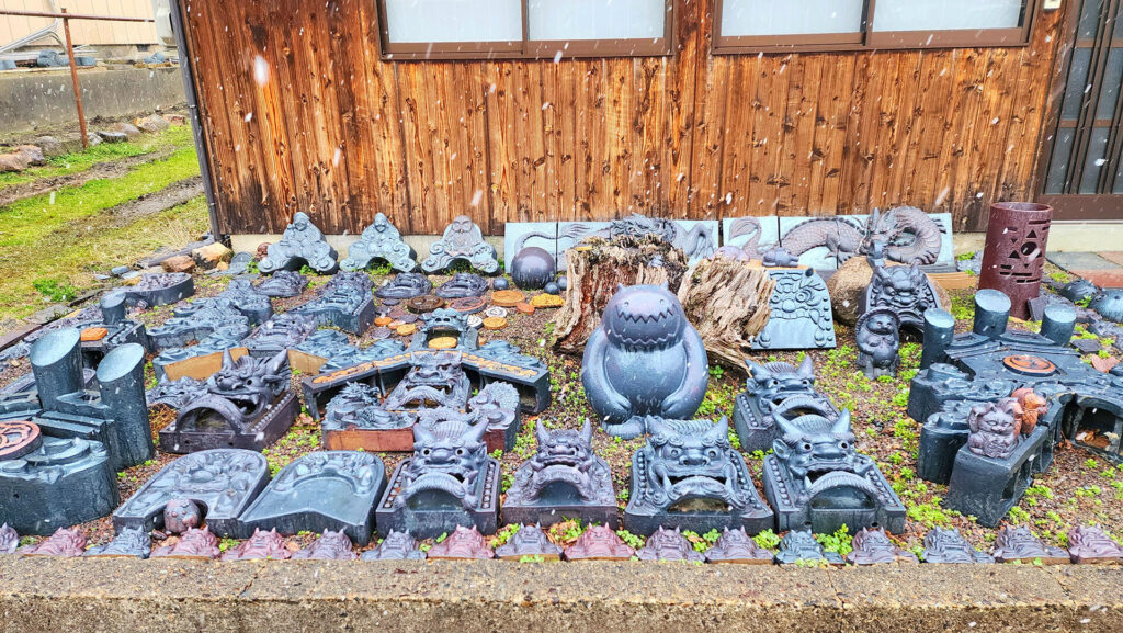 この瓦ロードを散策している時に雪が降って来たんですよね。