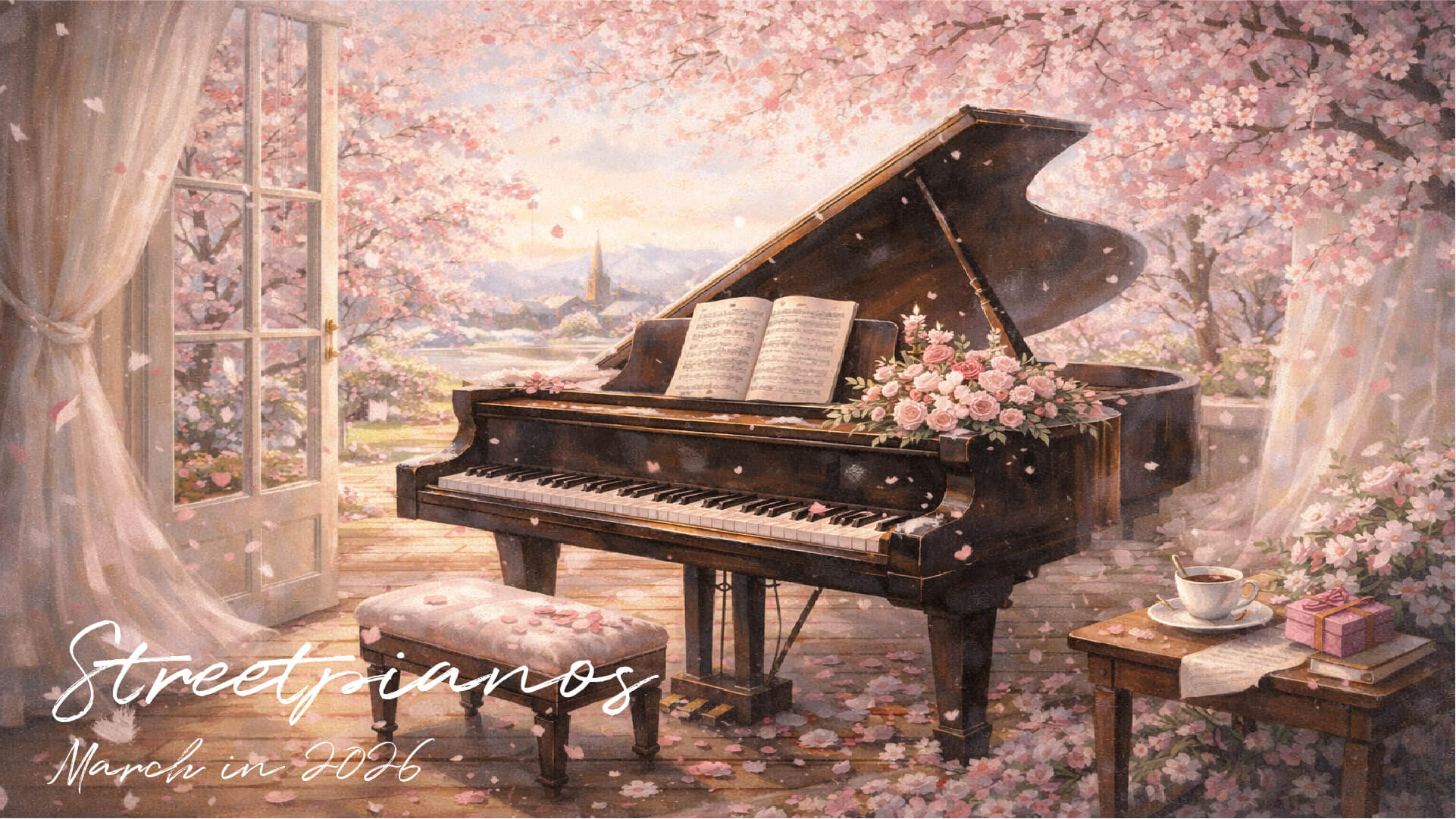 桜舞うピアノステージ