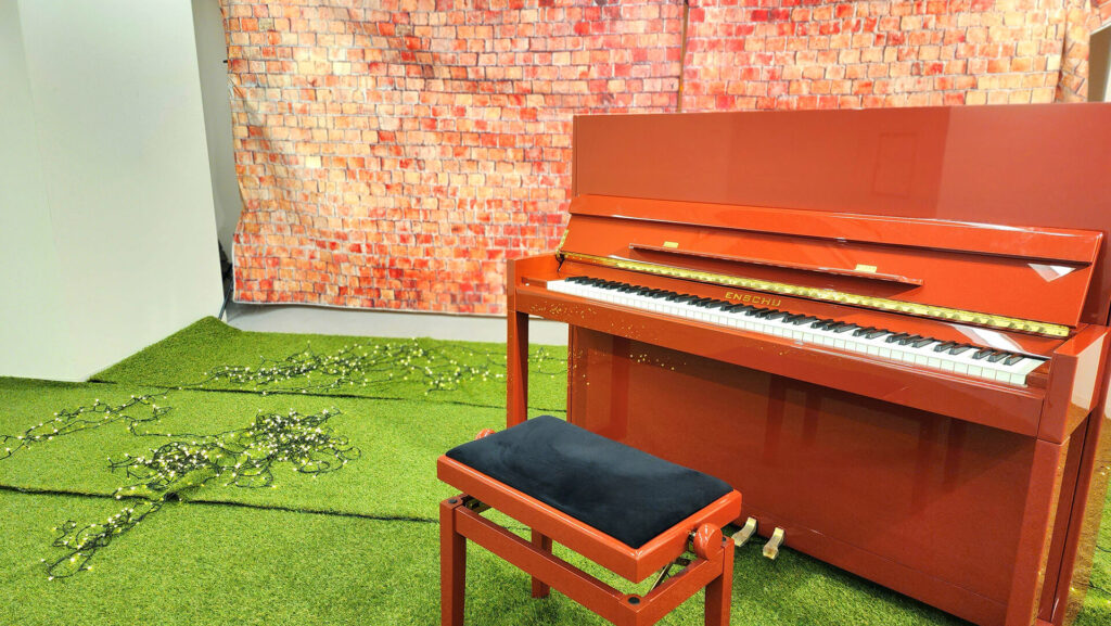 いつものレンガ調の色のピアノです。