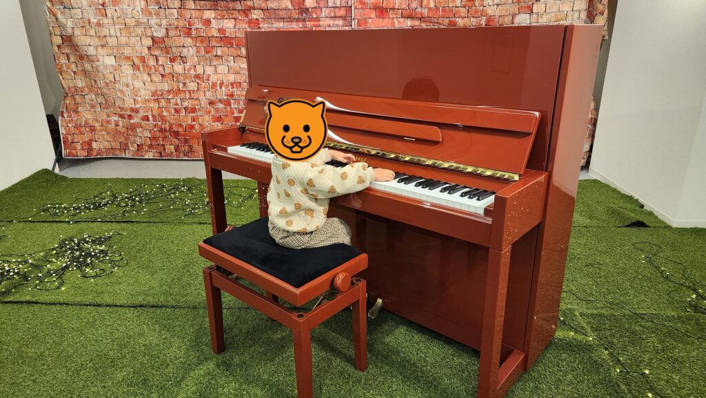 少し前までは家にある電子ピアノをじゃんじゃん叩いたりしていたのですが、このピアノは家のものとは違うと認識しているのか終始優しく弾いていてびっくりしました。