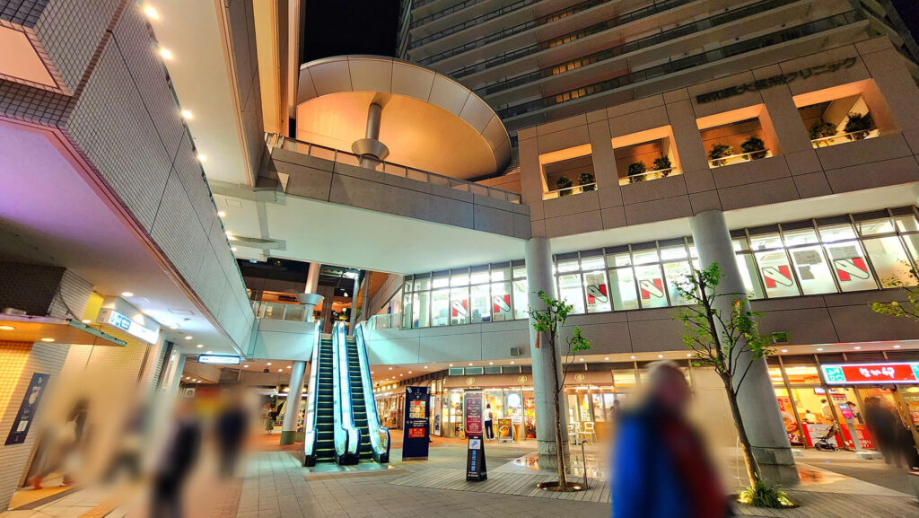 左側にあるエスカレーターから人がたくさん降りてきます。