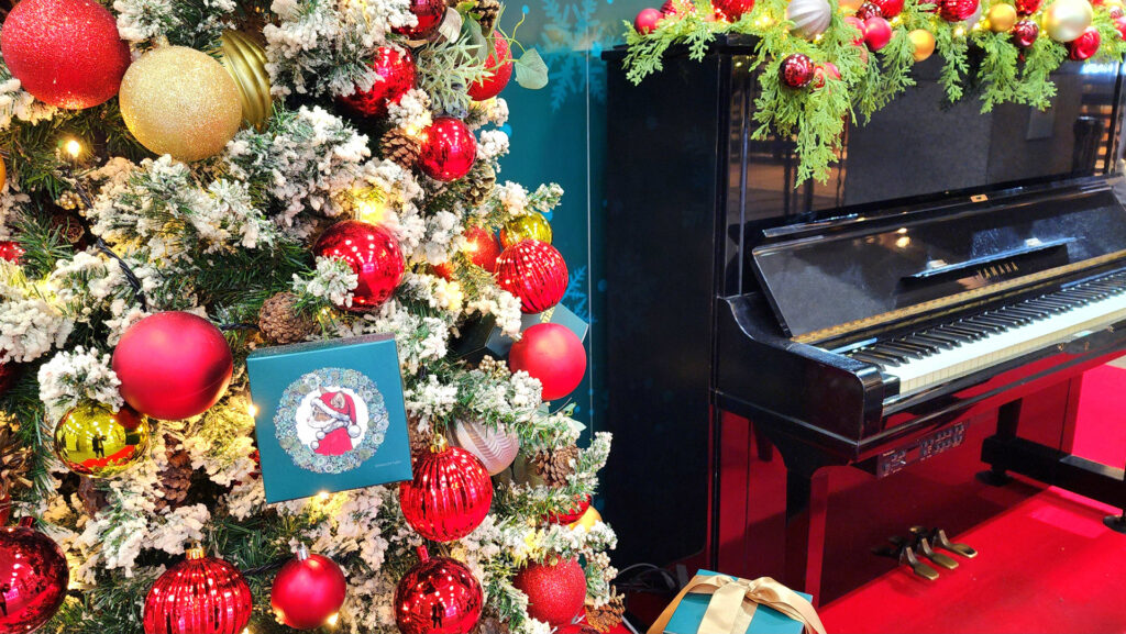 ・深紅のクリスマスツリーとピアノという相性が抜群のストピスポット