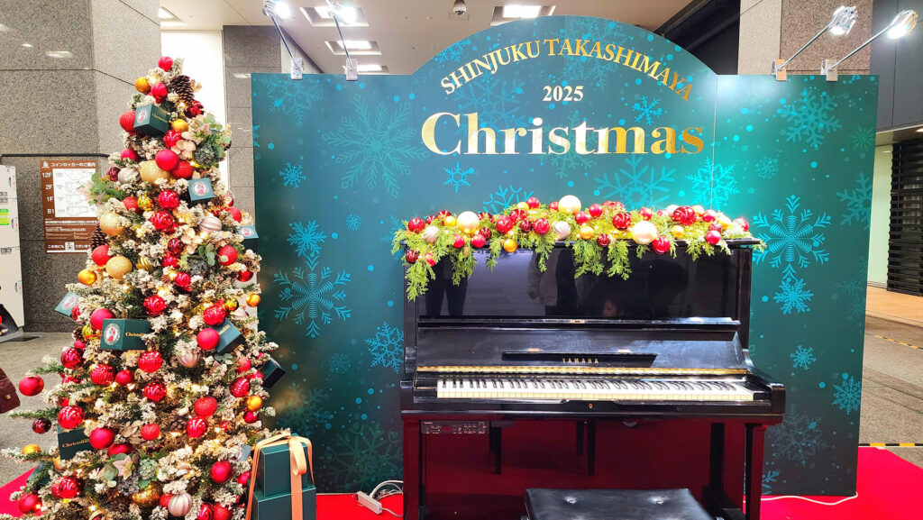 クリスマスシーズンのストリートピアノは年々増えているのですが、ここ新宿高島屋でもストリートピアノが登場しました。