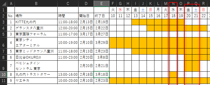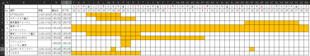 ですが、「2月のみのスポット」・「3月のみのスポット」・「2月~3月のスポット」と大きく3つに分かれています。